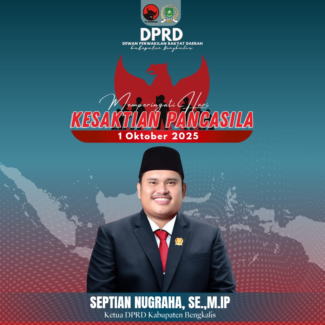 KupasKasus.com, Bengkalis - Humas DPRD, Ketua DPRD Kabupaten Bengkalis, Septian Nugraha, SE., M.IP, atas nama Pimpinan dan Anggota DPRD Kabupaten Bengkalis mengucapkan Selamat Hari Kesaktian Pancasila, ia mengajak seluruh elemen masyarakat untuk menjadikan momentum ini sebagai sarana memperkokoh persatuan, menjaga persaudaraan, dan meneguhkan komitmen kebangsaan, Rabu (01/10/2025).